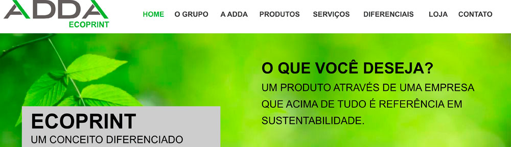 Além de todo o comprometimento de efetuar o melhor trabalho, a ADDA, se preocupa muito com o meio ambiente, ou seja, NOSSO mundo, e tem também em seus parceiros seu compromisso de produzir sem agredir o meio ambiente.